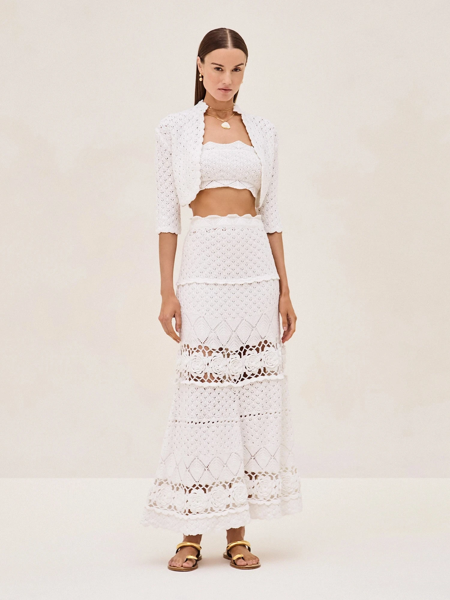 The Jana Skirt features a beautiful blend of detailed patterns and scalloped edges, offering a timeless and elegant silhouette. The tiered design and subtle sheer elements add a touch of playfulness. Perfectly paired with the Lily Top for a coordinated ensemble or styled with the Vosen Top for a layered look, the Jana Skirt is versatile and chic.