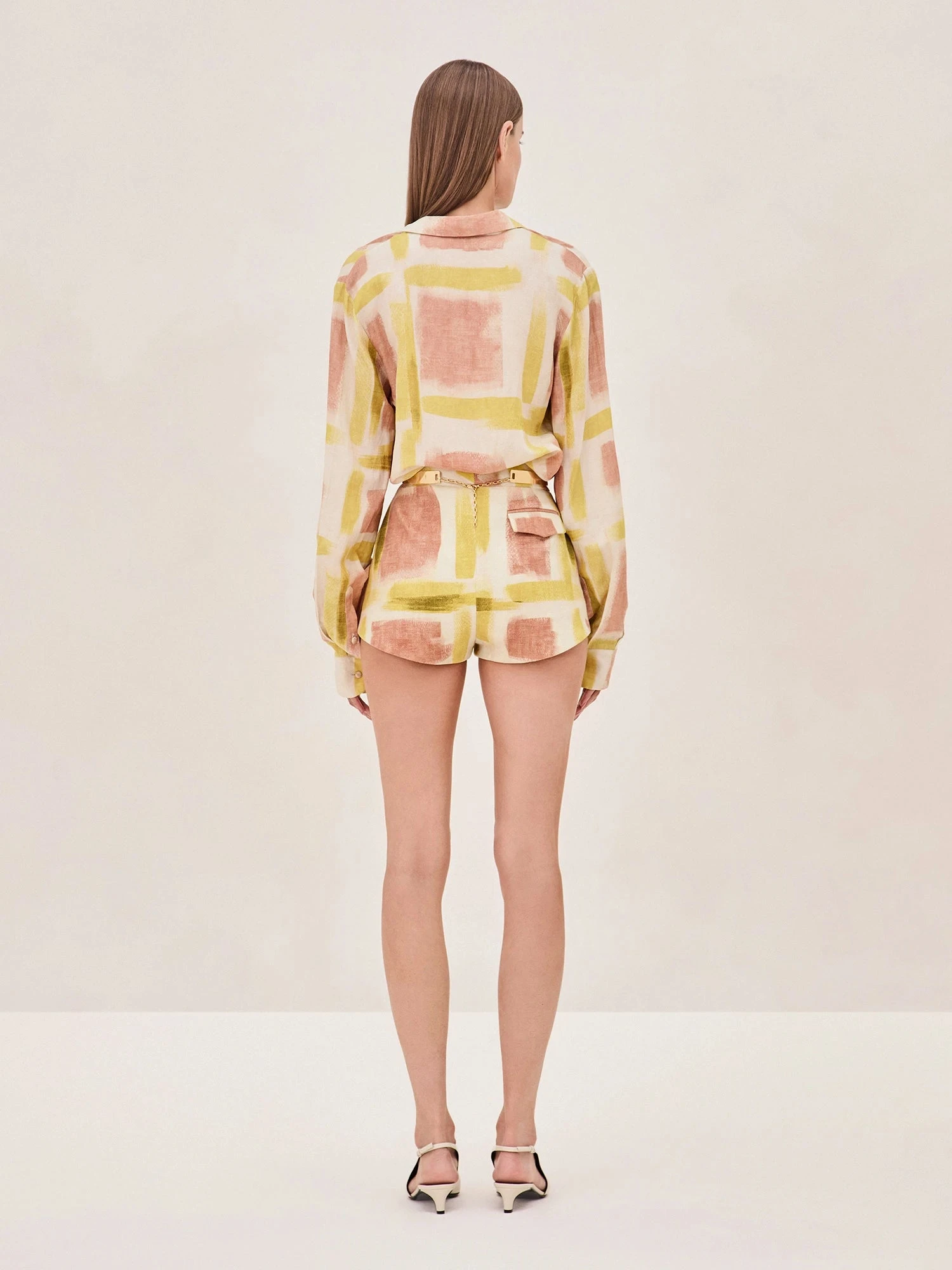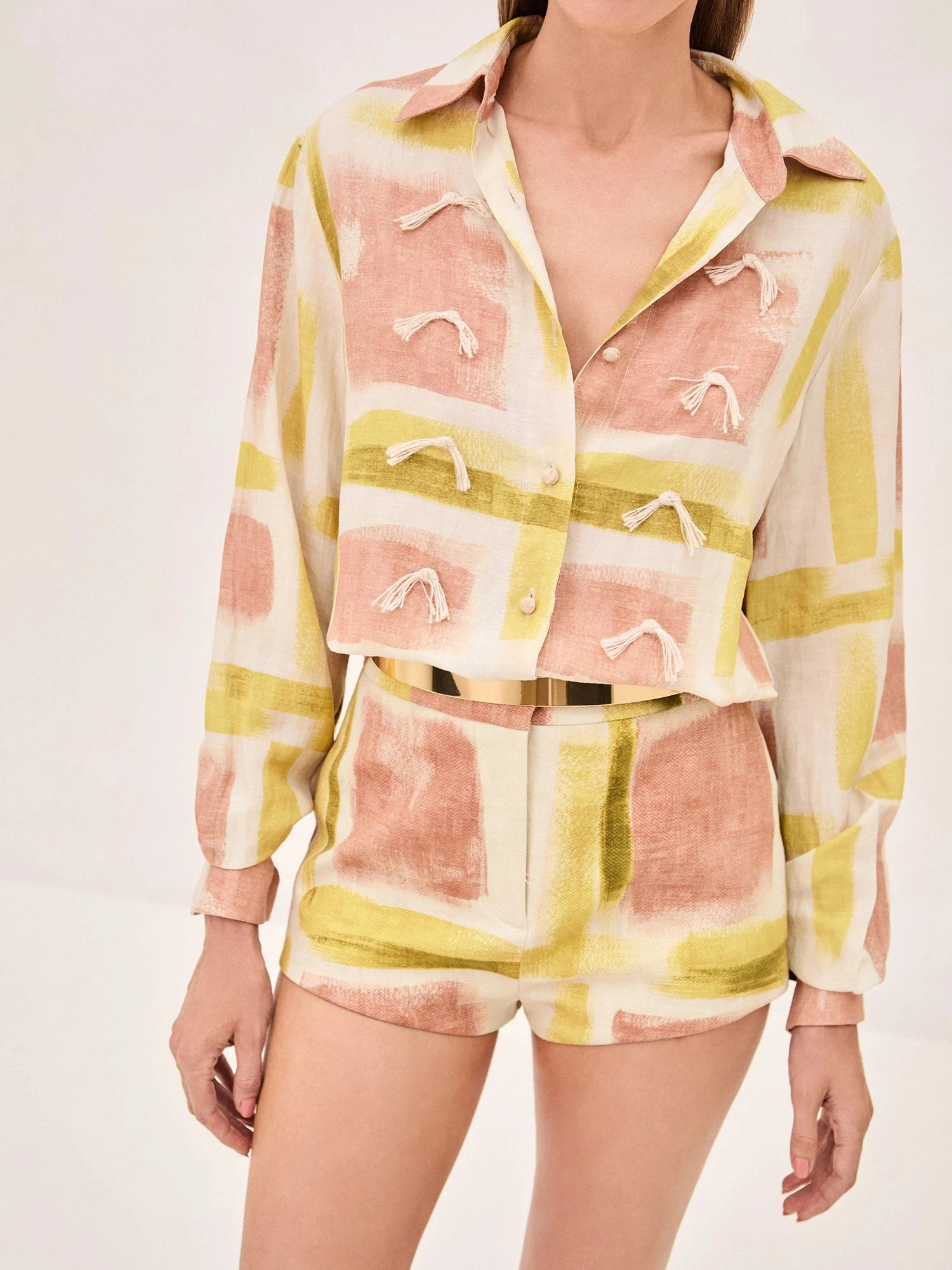 Meet the Perea Top, where laid-back luxury meets eye-catching detail. With its bold abstract print and relaxed fit, this top is all about effortless elegance. But it’s the subtle tassel details that truly set it apart, adding a playful touch to this sophisticated piece. For a look that’s as coordinated as it is chic, pair it with the Remm Shorts.