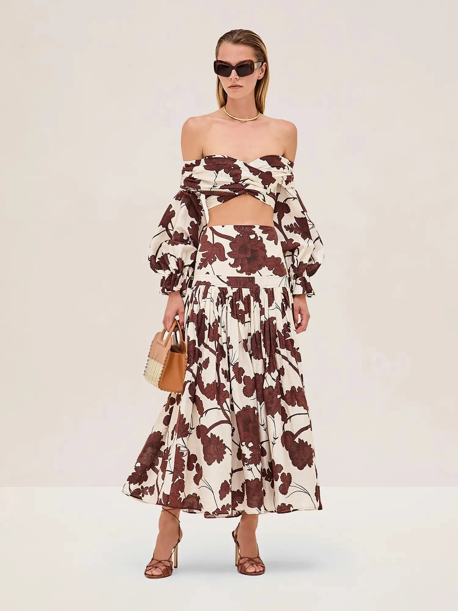 The Trisha Top is designed with an off-the-shoulder neckline, removable puff sleeves, and a chic twisted front detail. Pair it back with the Napoli Skirt for a stunning, coordinated look thatβs ready for any event.Β